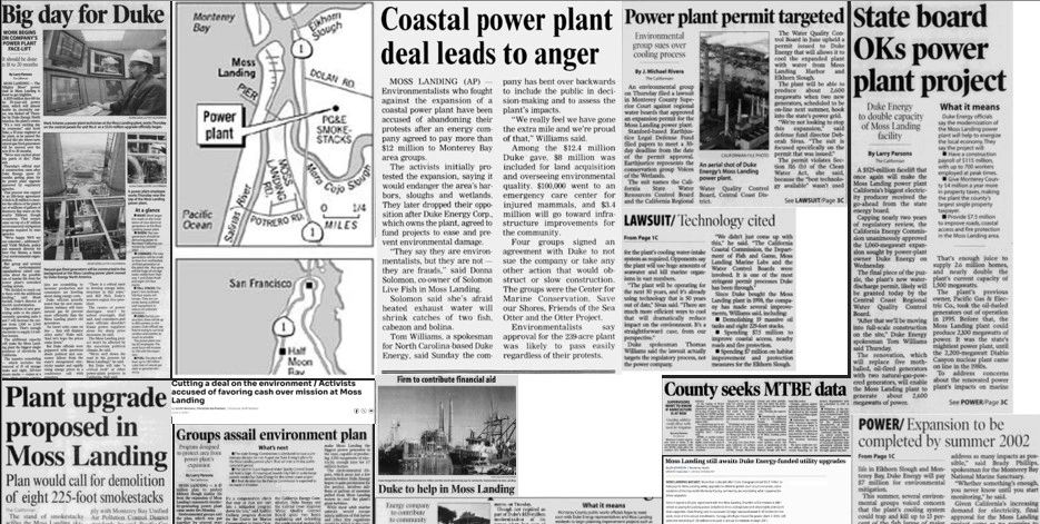 “Eager to placate environmentalists, the Duke Energy Corp. agreed to pay more than $12 million to Monterey Bay area groups whose objections could have scuttled the controversial expansion of its Moss Landing power plant, destined to be the state's largest.”